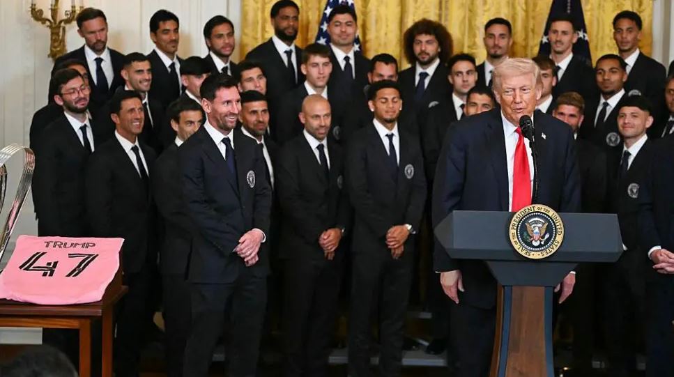 Pasi skuadra e Inter Miamit doli në skenë, Trump hyri në Dhomën Lindore të Shtëpisë së Bardhë i shoqëruar nga Messi dhe pronari i klubit Jorge Mas, pas një dite të mbushur me ngjarje në frontin politik ku ai shkarkoi nga pozicioni shefen e Sigurisë Kombëtare, Kristi Noem.