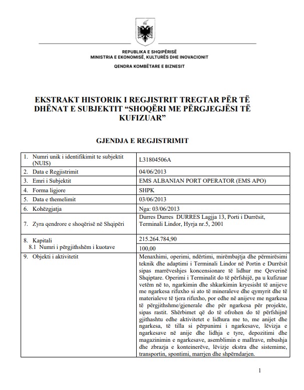(Kliko këtu për të lexuar ekstraktin historik në QKB të kompanisë)