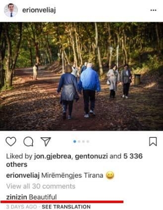 Rigels Rajku, Noizy është ndjekës i rregullt i kryebashkiakut Erion Veliaj në Instagram dhe shpeh komenton në fotografitë e tij.