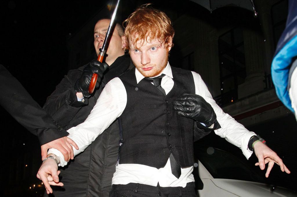 Sheeran është ndihmuar nga të pranishmit në festë pasi ai nuk mund të qëndronte në këmbë.