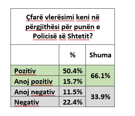 Me rastin e fillimit të punës së një Drejtori të ri të Policisë së Shtetit, QENDRA AGENDA zhvilloi një sondazh opinioni për sigurinë e shtetasve dhe punën e Policisë së Shtetit. Linku i pyetësorit u shpërnda me SMS krejt të rastësishme. Plot 1192 banorë të rritur nga i gjithë territori i vendit e plotësuan pyetësorin, duke realizuar kështu një kampion me marzh gabimi statistikor prej 2.8%, maksimumi. Shihni më poshtë rezultatet e sondazhit.