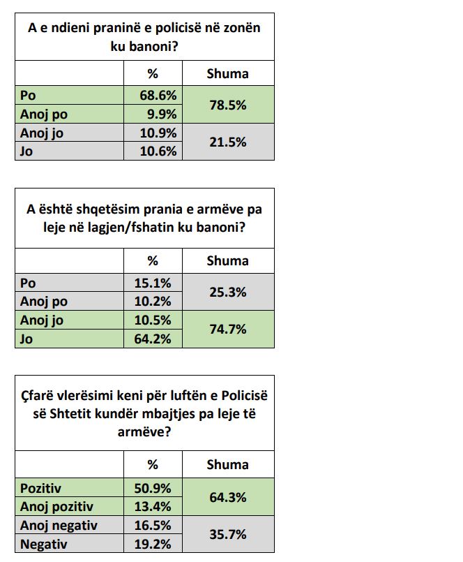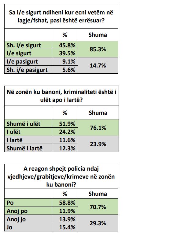 Me rastin e 113-vjetorit të themelimit të Policisë së Shtetit Shqiptar, QENDRA AGENDA zhvilloi një sondazh opinioni për sigurinë e shtetasve dhe punën e Policisë së Shtetit. Linku i pyetësorit u shpërnda me SMS krejt të rastësishme. Plot 1187 banorë të rritur nga i gjithë territori i vendit e plotësuan pyetësorin, duke realizuar kështu një kampion me marzh gabimi statistikor prej 2.9%, maksimumi. Shihni më poshtë rezultatet e sondazhit.