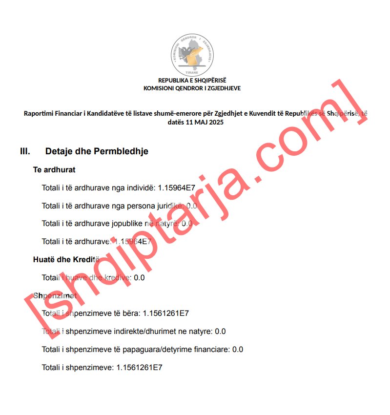 (Foto: Raporti financiar i Elisa Spiropalit)
