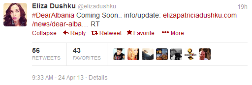 Eliza nuk ka dhënë më shumë detaje për arsyet e kësaj vizite, vetëm se ka shkruar se shumë shpejt do të jetë në Shqipëri.