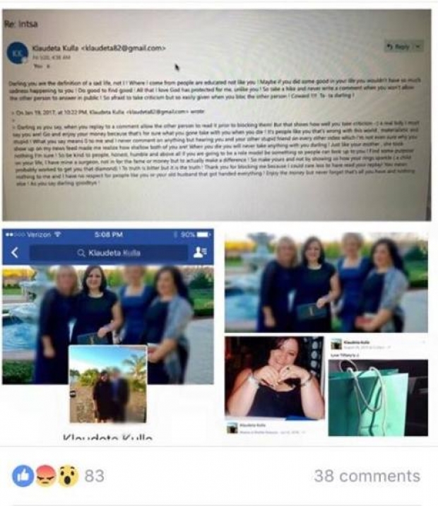 “Klaudeta Kulla me email adresën: [email protected]. Njeri i poshtër, i pa zemër dhe thjesht njeri injorant. Ku të përket ty oh poshtërsi e madhe të marrësh në gojë nanën time. O shpirt i keq, të përmendësh nënën time do të thotë të shkosh shumë larg.
