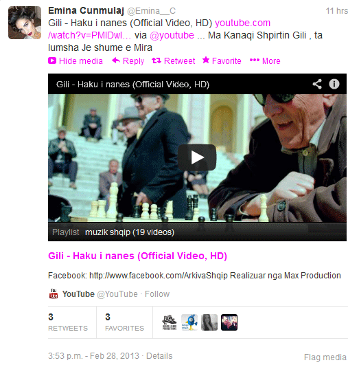 Bukuroshja Çunmulaj ka postuar në faqen e saj zyrtare në Twitter këngën “Haku i Nanës” të këngëtares Gili.