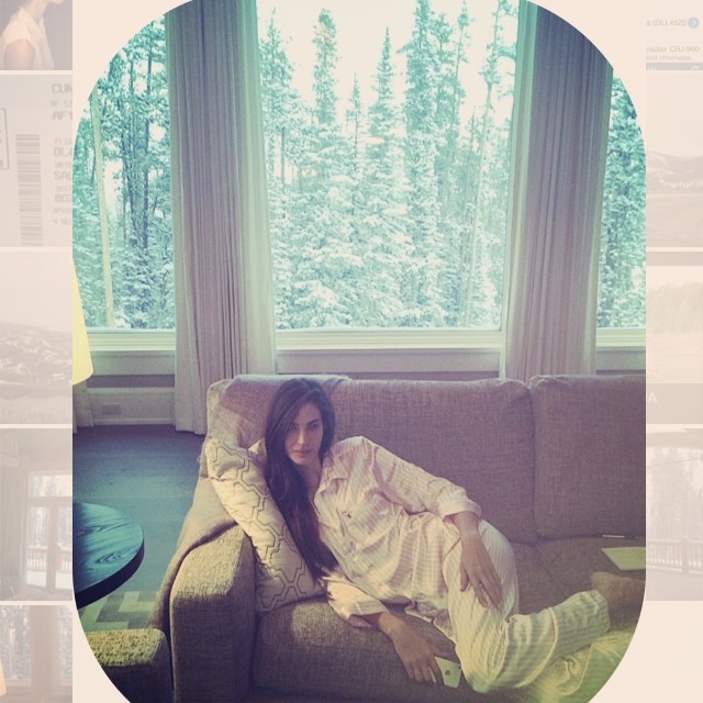 Ajo ka publikuar në Instagram disa foto ku është duke u relaksuar në shtëpi afër oxhakut e veshur me pizhama duke u dukur mjaft e relaksuar.