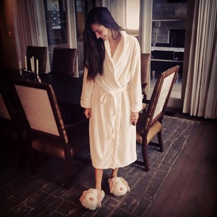 Ajo ka publikuar në Instagram disa foto ku është duke u relaksuar në shtëpi afër oxhakut e veshur me pizhama duke u dukur mjaft e relaksuar.