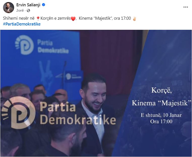 “Nesër, shihemi në Korçën e shtrenjtë, Kinema “Majestik”, ora 17:00”, shkroi Salianji në faqen zyrtare të Facebook.
