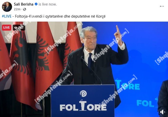 Ai nuk kishte as 300 shikime në live në Facebook, përballë 1.1 mijë shikimeve të Salianjit, i cili po fliste në të një njëjtin moment që edhe Berisha po mbante fjalimin. Trend ky i njëjtë shikueshmërie gjatë gjithë takimit, me mbi 1 mijë shikime, gati 4-fish me shumë se kryedemokrati.