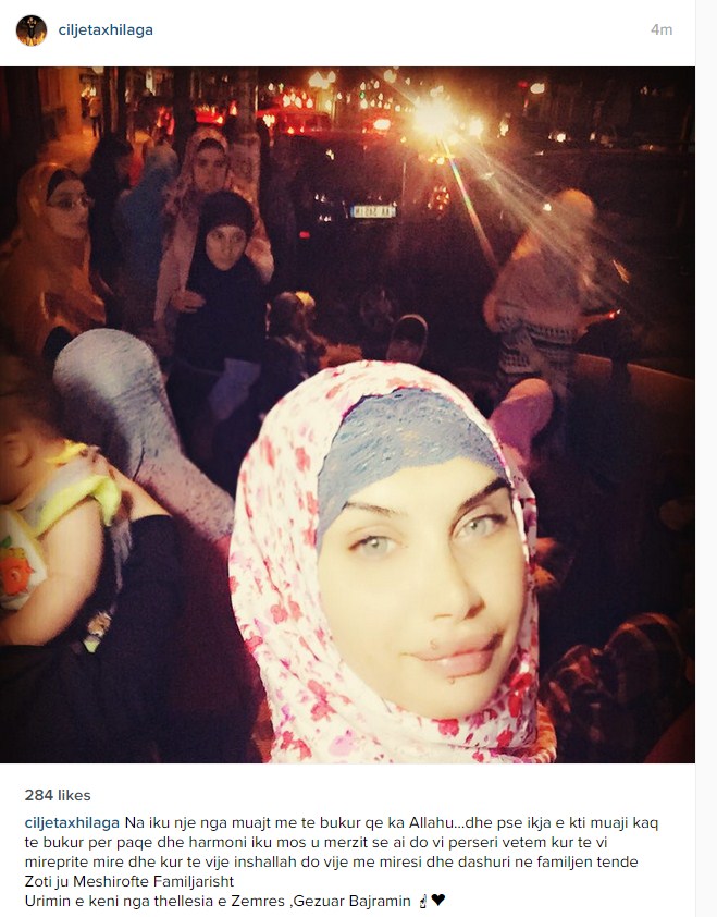 Këngëtarja Çiljeta Xhilaga ka vendosur të urojë besimatarët përmes një fotoje ku vetë ajo shfaqet me shami.