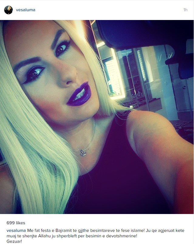 Këngëtarja Çiljeta Xhilaga ka vendosur të urojë besimatarët përmes një fotoje ku vetë ajo shfaqet me shami.