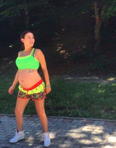 Ajo është fotografuar duke bërë vrap si dhe ushtrime të tjera në ajër të pastër, ndonëse barku tashmë është mjaft i dukshëm.