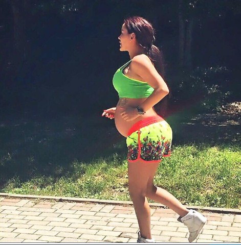 Ajo është fotografuar duke bërë vrap si dhe ushtrime të tjera në ajër të pastër, ndonëse barku tashmë është mjaft i dukshëm.
