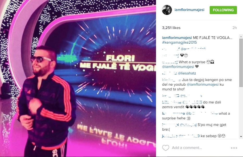 Artisti është shfaqur në skenën e spektaklit, ndërsa bën prova bashkë me Klajdi Harunin. "Jo duet...Por në garë me njëri - tjetrin", ka shkruar Flori.