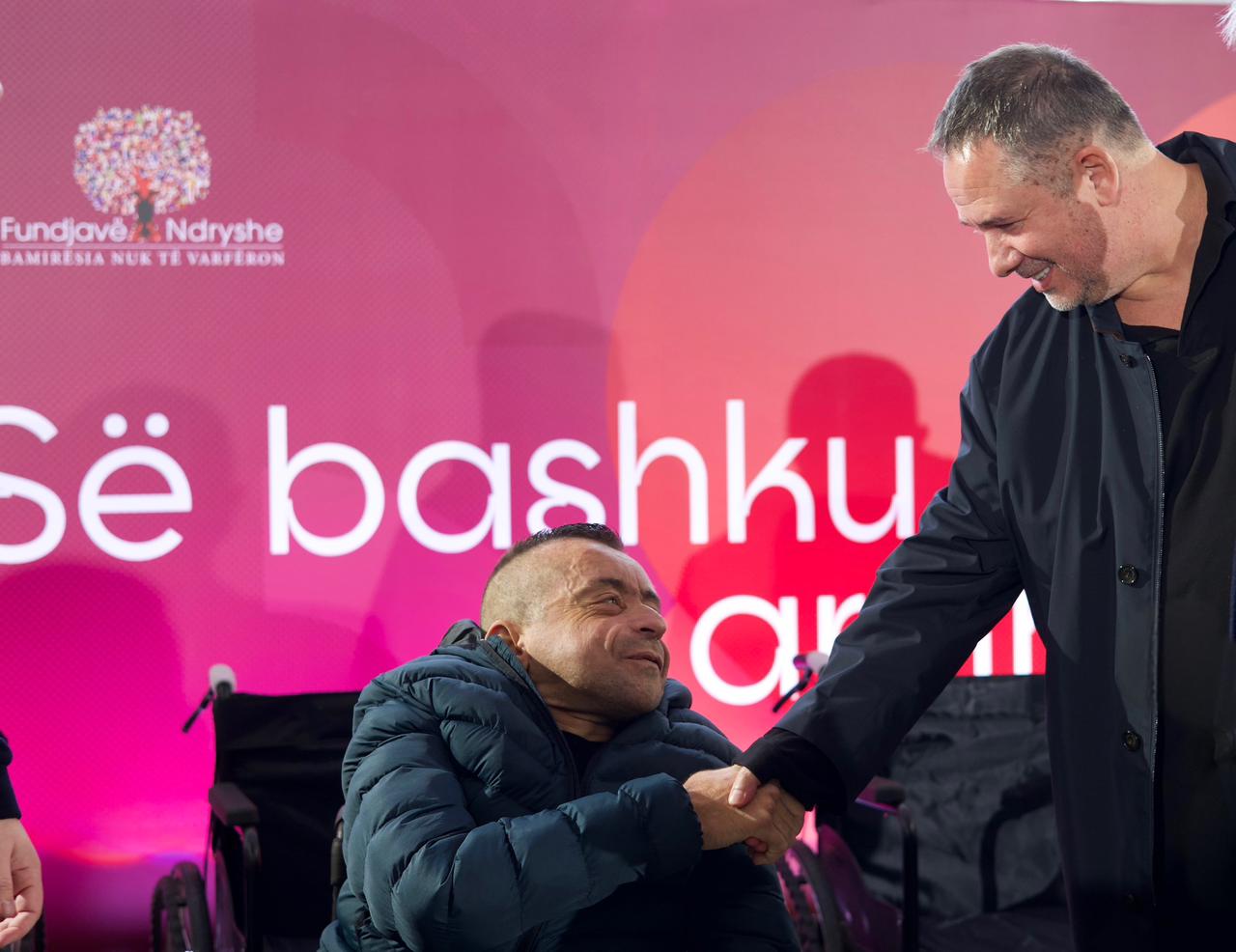 Fondacioni Mane dhe Fundjava Ndryshe vijuan turin për shpërndarjen e 1000 karrigeve me rrota në të gjithë Shqipërinë. Themeluesi i Fondacionit Mane, Samir Mane, dhe përfaqësuesi i Fundjavës Ndryshe, Eni Demirxhiu, takuan persona të këtij komuniteti dhe familjarë të tyre në mjediset e stadiumit “Loro Boriçi” në Shkodër për t’i dhuruar karriget me rrota.