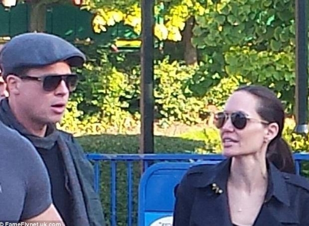Aktori 52-vjeçar siç shihet nga fotot, e shtrëngon nga krahu Jolie-n, ku mesa duket i kërkon të qetësohet.