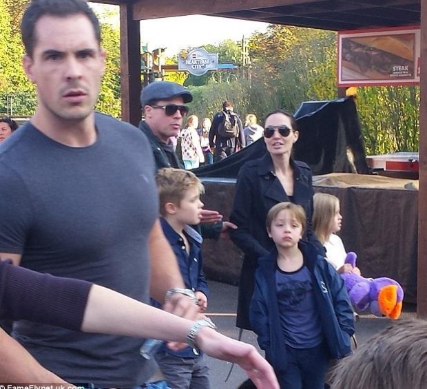 Aktori 52-vjeçar siç shihet nga fotot, e shtrëngon nga krahu Jolie-n, ku mesa duket i kërkon të qetësohet.