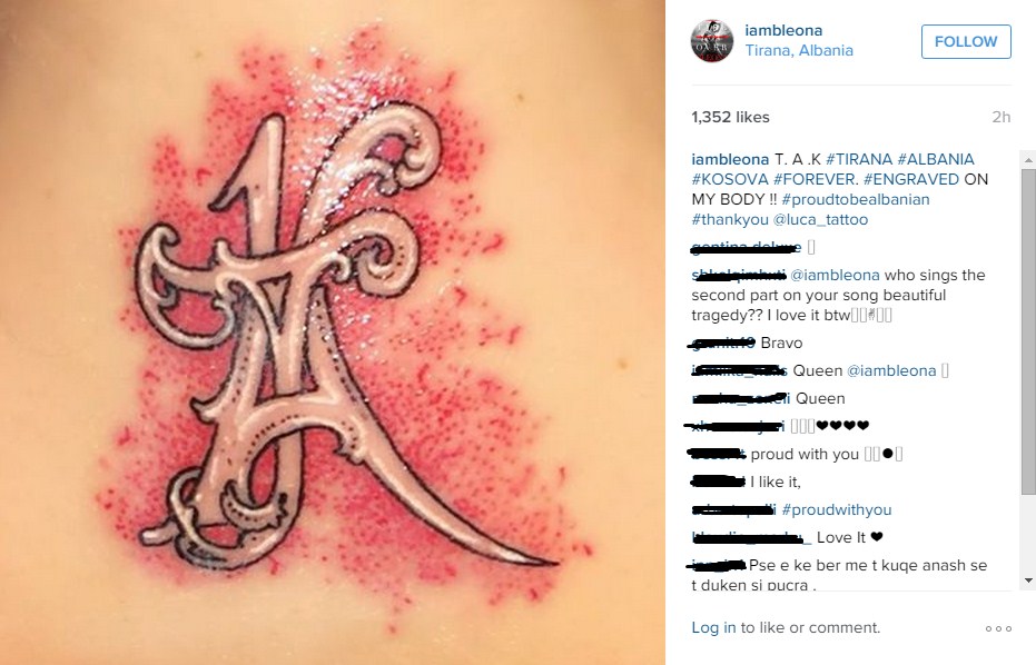 Këngëtarja 36-vjeçare ka vizatuar në trup tre inicialet që për të kanë një rëndësi shumë të madhe: 'A' për Albania, 'K' për Kosovën dhe 'T' për Tiranën.