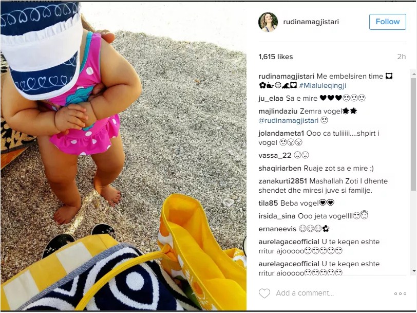 Rudina ka ndarë vazhdimisht momente nga pushimet e saj në jug të vendit, ku nuk kanë munguar edhe pozat e Mias, të cilën para një jave e pamë duke qëndruar mbi një kamerdare.