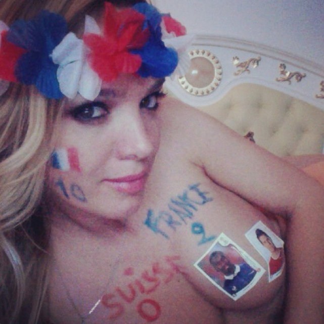 Aktorja franceze e filmave pornografik përmes këtij në shkrimi gjoksin e saj ka dashur të njoftojë se është një fanse e zjarrtë e futbollit. Ajo është e njohur për vizatimin e skuadrave të futbollit në trupin e saj.