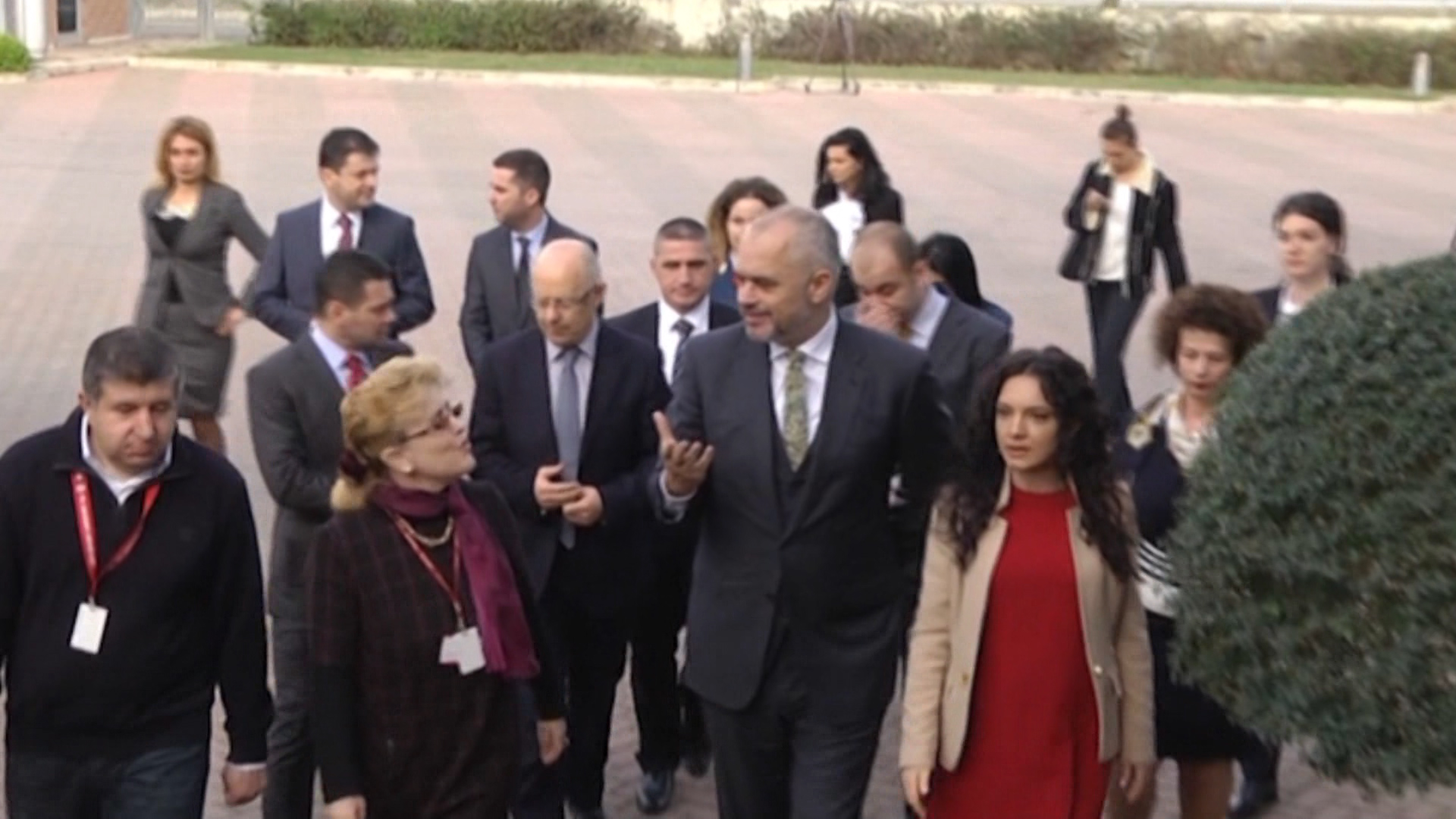 Drejtoresha Spiropali është shfaqur sot përkrah kryeministrit në këtë aktivitet, teksa kishte veshur një fustan të kuq, i cili nxjerr në pah barkun e saj të rrumbullakosur.