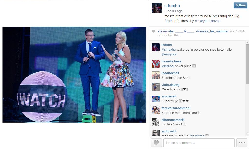 Edhe vetë 19-vjeçarja duket se e shijoi suksesin, pasi në një foto të postuar në Instagram, e ka parë veten si moderatoren e ardhshme të Big Brother 9, por i dashuri i saj nuk dëshiron ta ndjejë si konkurente, për këtë arsye i sugjeron të prezantojë emisionin e mëngjesit në TopChannel, 'Wake Up'.