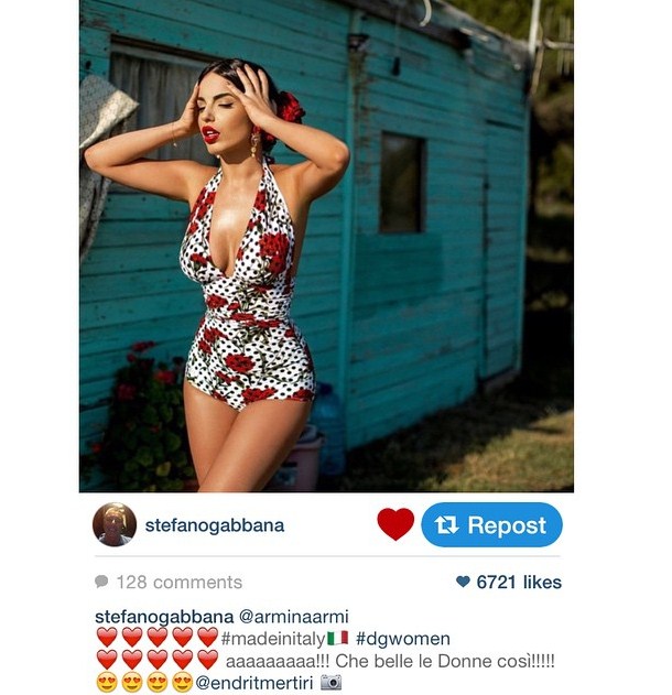 Në setin e fundit fotografik të realizuar nga Endrit Mërtiri, Armina Mevlani shfaqet seksuale dhe diçka të tillë e ka vënë re edhe stilisti i njohur Stefano Gabbana.