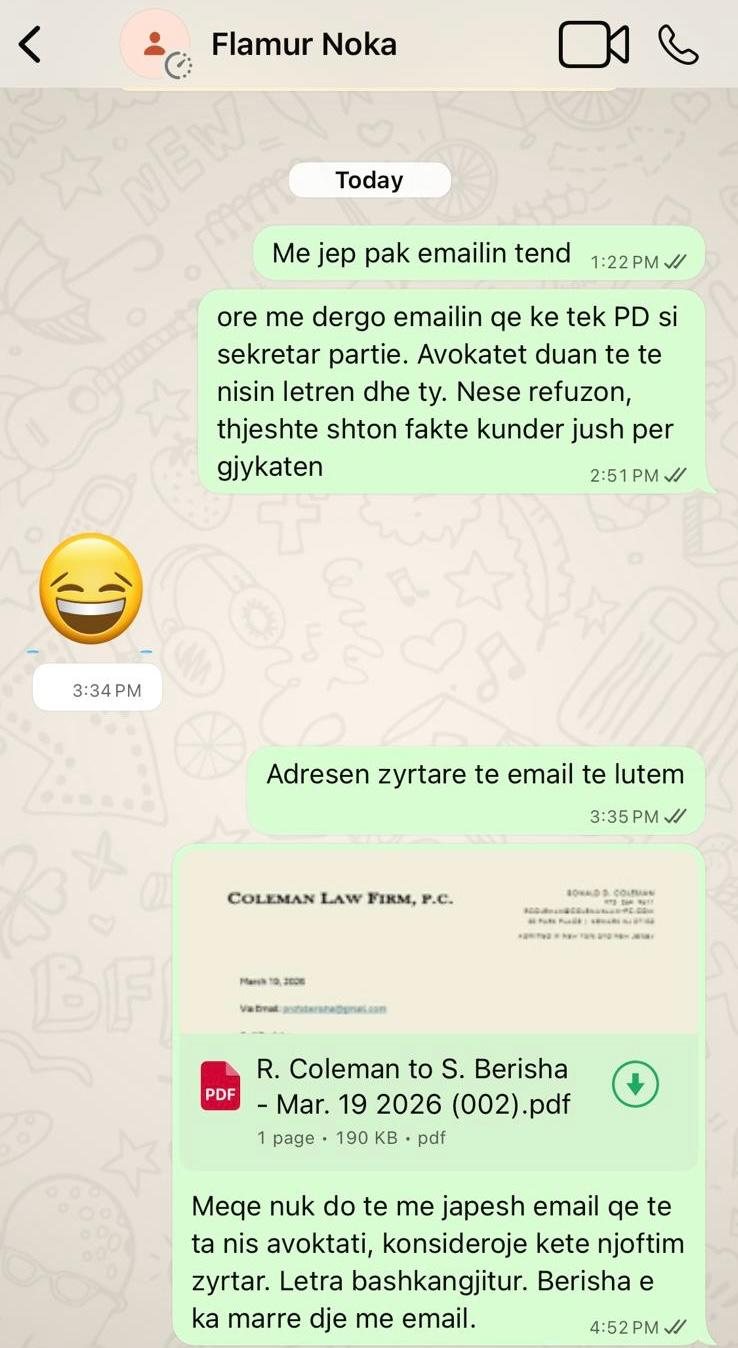 Sa për informacion publik, kërkesa zyrtare nga avokatët e mi i është dërguar Sali Berishës via e-mail më 19 mars 2026.