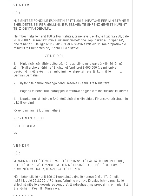 (Vendimi i marrë sot gjatë mbledhjes së Këshillit të Ministrave)