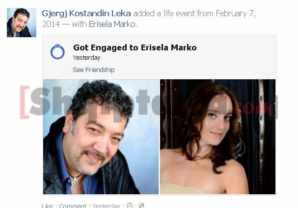 Kantautori Gjergj Leka mbrëmë ka kurorëzuar fejesën me regjisoren e quajtur Eriselda Marko. Përmes një statusi në rrejtin social “Facebook” Gjergji ka ftuar të gjithë miqtë dhe dashamirësit e tij për të qenë prezentë në fejesën e organizuar në një nga klabet e “Bllokut” në Tiranë.