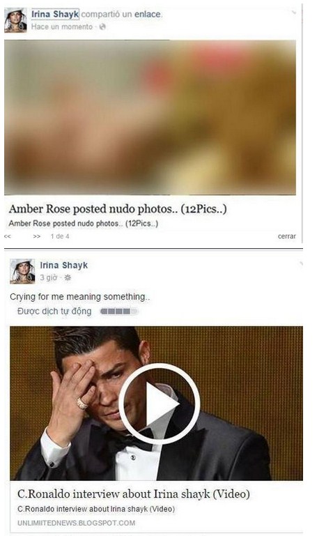 Hakerat dashakeq shpërndanë gjithashtu edhe një lajm të rremë sikur Cristiano Ronaldo qante për ish-të dashurën e tij dhe e shoqëruan me mbishkrimin "Qan për mua, kjo do të thotë diçka...".