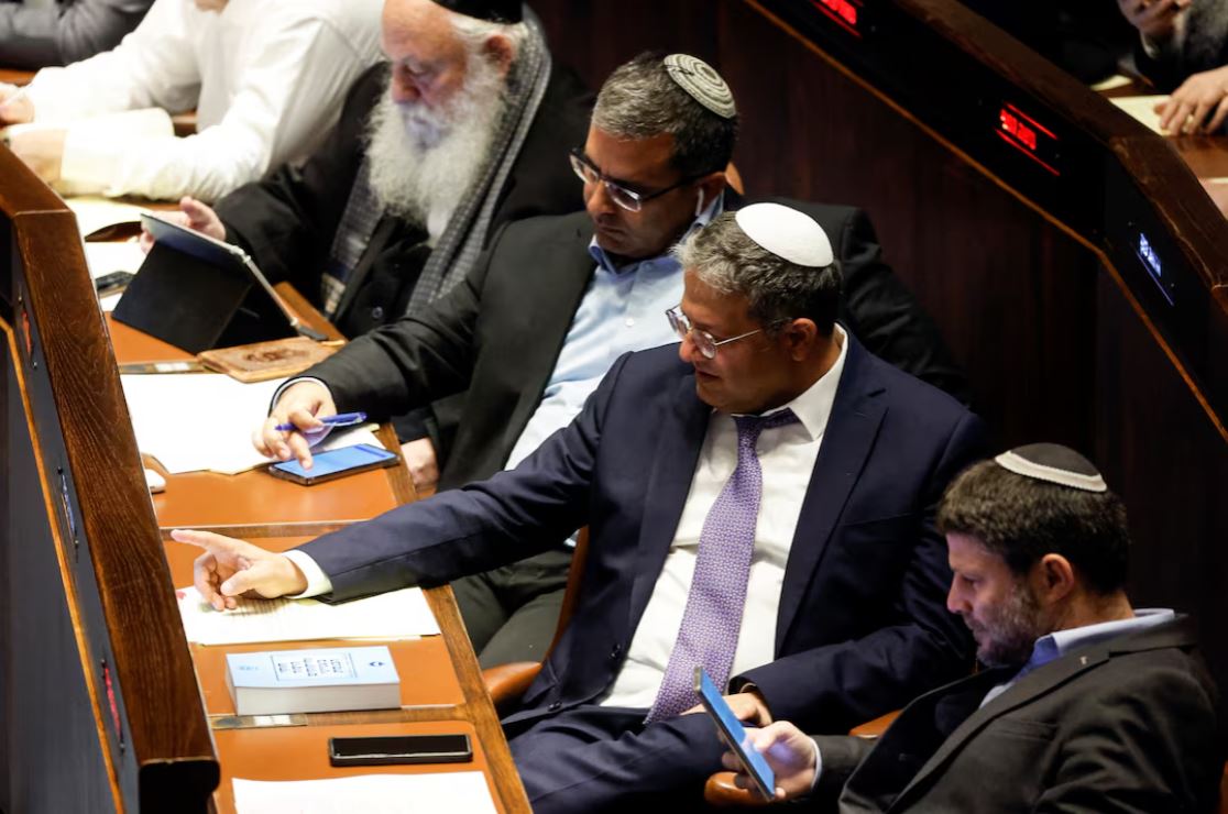Anëtarët izraelitë të krahut të djathtë të Knesset, Itamar ben Gvir dhe Bezalel Smotrich marrin pjesë në seancë në Knesset