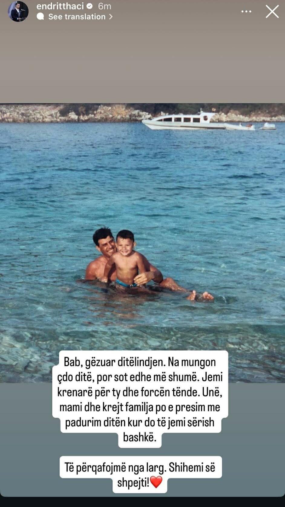 “Bab, gëzuar ditëlindjen. Na mungon çdo ditë, por sot edhe më shumë. Jemi krenarë për ty dhe forcën tënde”, ka shkruar ai.
