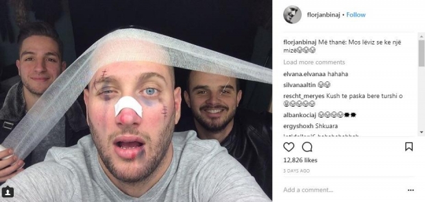 I gjithi me fasho, me një sy të nxirë e me plot dëmtime të tjera, kështu është dukur aktori i “Portokallisë”, Florjan Binaj në foto e fundit të publikuara nga ai.