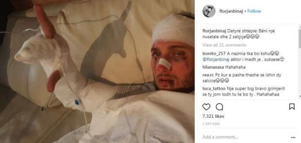 I gjithi me fasho, me një sy të nxirë e me plot dëmtime të tjera, kështu është dukur aktori i “Portokallisë”, Florjan Binaj në foto e fundit të publikuara nga ai.