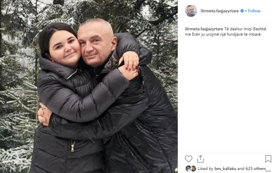 Presidenti Ilir Meta ka publikuar këtë të shtunë në rrjetin social “Facebook” e “Instagram” një fotografi ku shfaqet sëbashku me vajzën e tij Erën.
