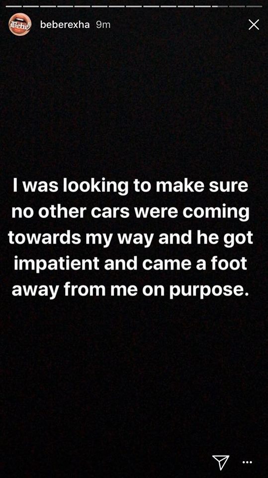 Kështu, mora çantën time të rëndë YSL dhe e godita makinën e tij. Isha kaq e trembur dhe e inatosur. Por duhet të bëj kujdes me nervat”, është shprehur e revoltuar përmes disa postimeve në InstaStory këngëtarja Bebe Rexha.