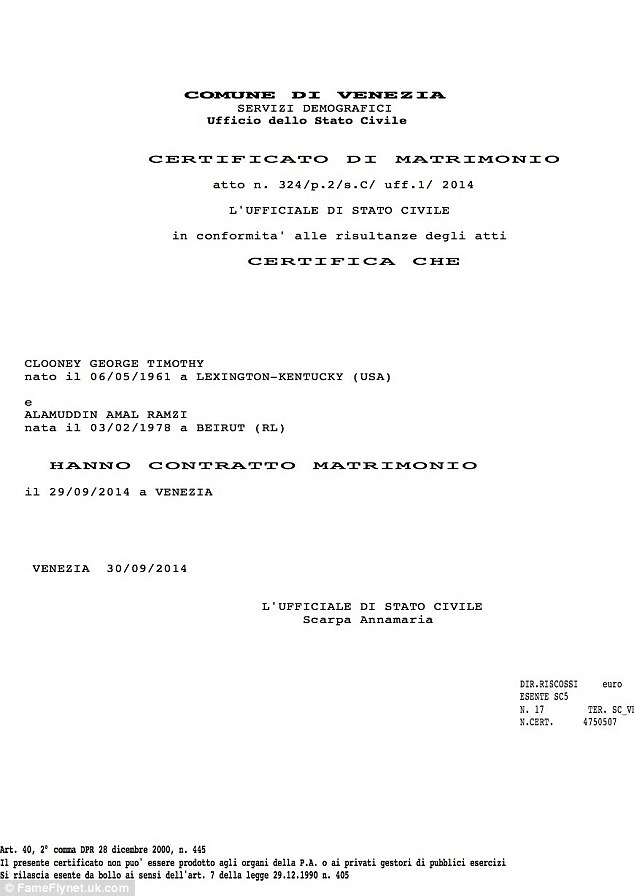 Por përveç ceremonisë dhe fotove të publikuara nga detajet e festës, versioni italian i revistës “Vanity Fair ka publikuar cerfitikatën e celebrimit ku çifti ka nënshkruar martesën.