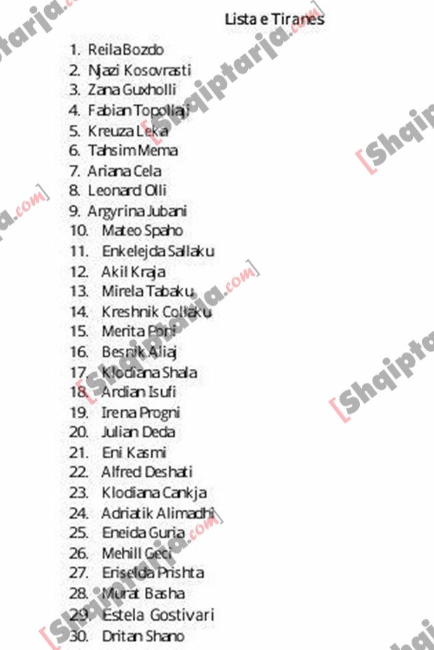 Ndërkohë, televizioni A1 Report zbardhi mbrëmjen e së hënës listën e partisë Socialiste me 61 emrat për Këshillin Bashkiak.