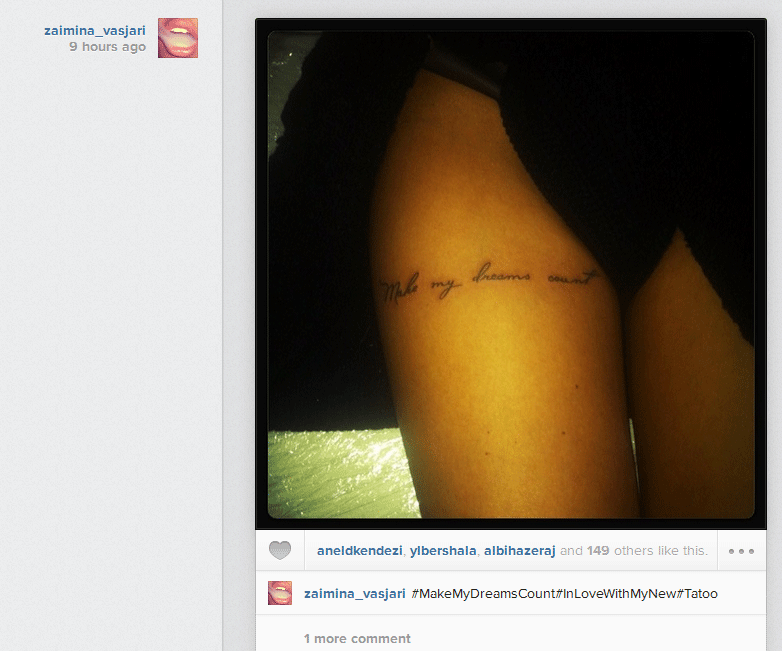 Ashtu siç duket edhe në foto Zajmina ka vendosur të ketë një tatuazh në një pjesë delikate.