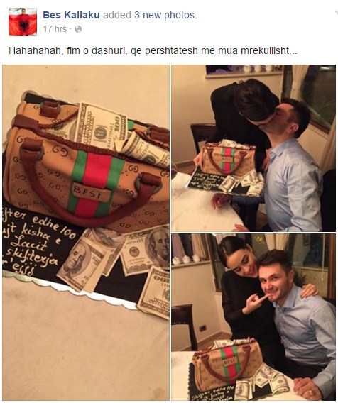 Xhensila përveçse i dedikoi një shkrim shumë emocionues në Instagram të fejuarit të saj, i bleu dhe një tortë të bërë me porosi vetëm për të. Një çantë 'Gucci' të mbushur me para, të cilës i kishte bashkangjitur me humor urimin: "Skifter, edhe 100. T'rujt Kisha e Laçit. Nga skifterja ër' ejjj."
