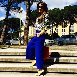 Maliqi kishte veshur një këmishë plot lule dhe ngjyra të kombinuara me një palë pantallona blu dhe këto foto të realizuara në Tiranë, i ka postuar në faqen e saj në Instagram.
