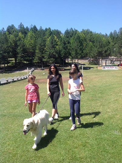 Ndërsa në një foto tjetër po bën ecje me vajzën Megin, dy mbesat Iris dhe Angela dhe qenin e tyre.