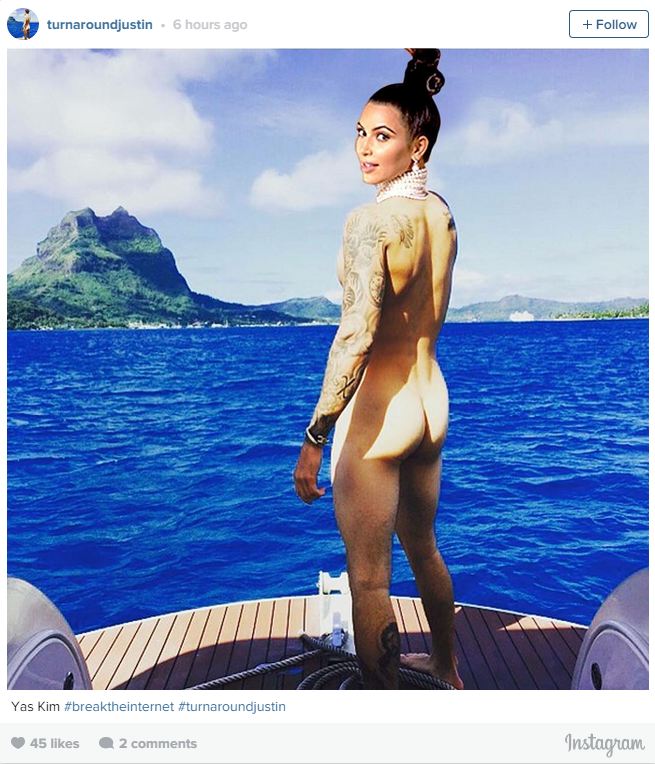 Justin Bieber duket se po kalon një fazë alla 'Miley Cyrus'. Bukuroshi 21 vjecar ka postuar një fotografi në Instagram teksa shijon pushimet në një jaht, pa mbathje dhe drejton shikimin e tij drejt një mali në anën tjetër.
