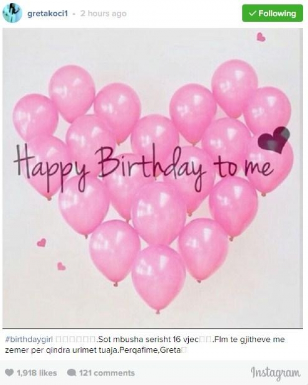 “Sot mbusha sërish 16 vjet. Faleminderit të gjithëve me zemër për qindra urimet tuaja. Përqafime,Greta”, shkruan këngëtarja në Instagram.
