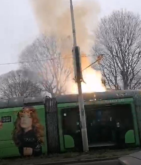 Sipas të dhënave të para të mediave në vendin fqinj, flaka u shkaktua nga një kabllo e rrjetit elektrik ajror që krijoi kontakt, duke prodhuar shkëndija. Drejtuesi i tramvajit dhe policia bllokuan menjëherë trafikun dhe siguruan zonën për të mos lejuar njerëzit të afrohen.