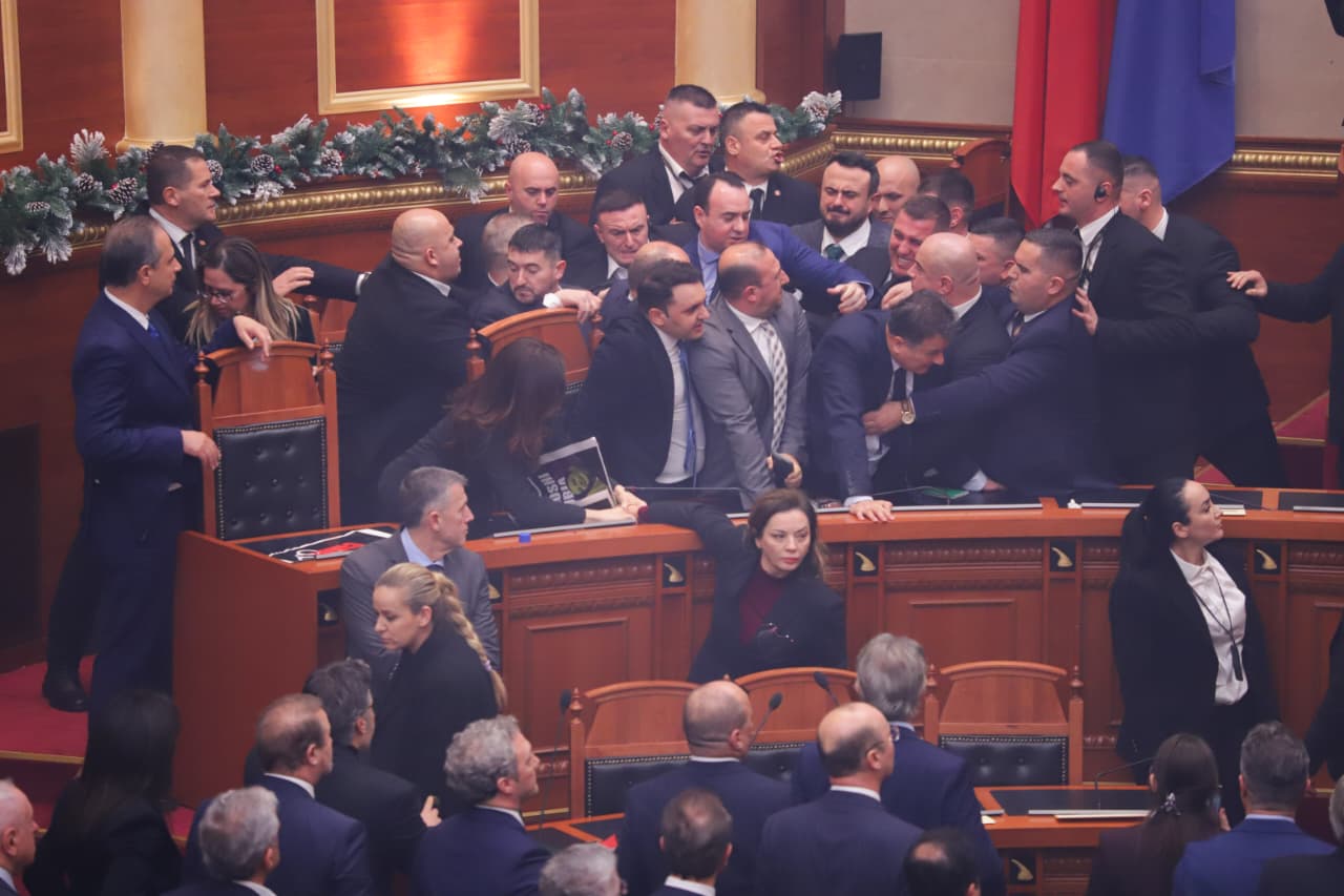 Kuvendi 1 orë 'arenë' përleshjeje, deputetët e PD zaptojnë karriget e ministrave dhe përplasen me Gardën: Ku është Balluku? Shabani betohet mes flakadanëve, PS kalon direkt në votim