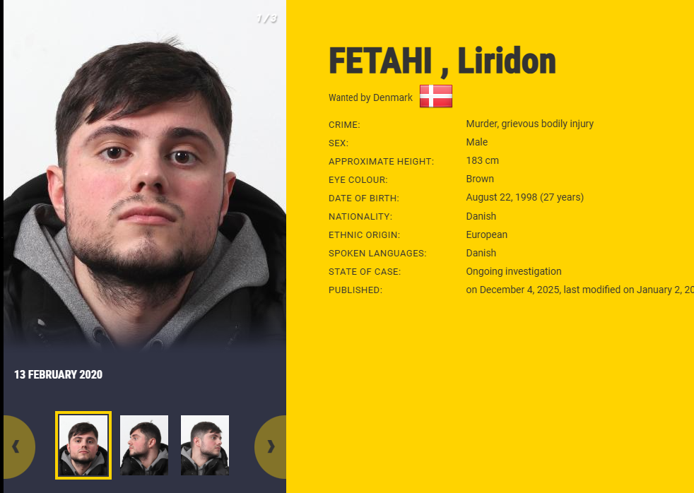 Sipas burimeve zyrtare, Fetahi ishte në kërkim ndërkombëtar mbi bazën e një “Red Notice” të lëshuar nga INTERPOLDanimarkë. një sinjal që përdoret për persona të dyshuar për krime të rënda.
