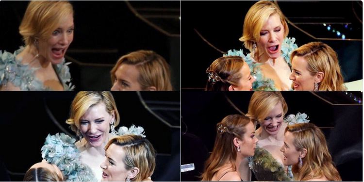 Ndonjëherë disa gjëra është e vështirë t’i  fshehësh, aq më tepër kur je përpara qindra kamerave, në një prej eventeve më të mëdha të vitit, siç janë dhe çmimet Oscar. Një takim mes Cate Blanchett, Brie Larson dhe Kate Winslet në Tapetin e Kuq është bërë objekt thashethemesh në internet.